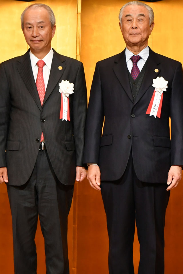 引責辞任した日本空港ビルデングの鷹城勲前会長(右)と横田信秋前社長(資料写真)=20年1月22日 PHOTO: Tadayuki YOSHIKAWA/Aviation Wire