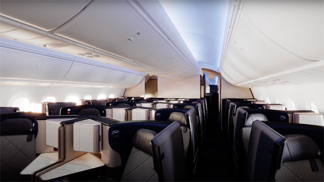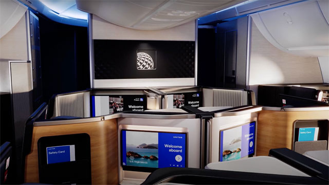 今回の客室コンセプトは「ユナイテッド・エレベーテッド(United Elevated)」と称し、ビジネスクラスだけでなく、プレミアムプラスやエコノミーにも展開される。プレミアムプラスにはプライバシーディバイダーやワイヤレス充電機能が追加され、エコノミークラスでは全席に13インチ超の個人用モニターを装備。Bluetooth接続も全クラス共通で対応する。スマートフォンなどWi-Fi機器による機内インターネット接続サービスは、スペースXの「スターリンク(Starlink)」を導入する。