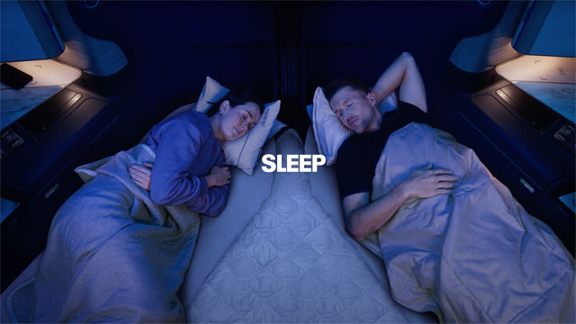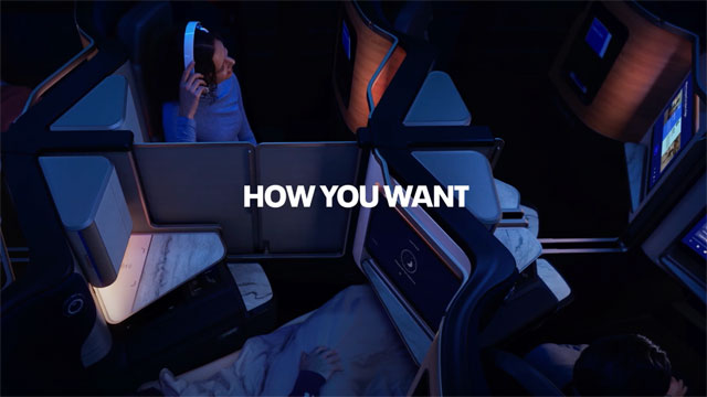 ユナイテッド航空の新ビジネスクラス「ユナイテッド・ポラリス・スタジオ」(同社の動画から)