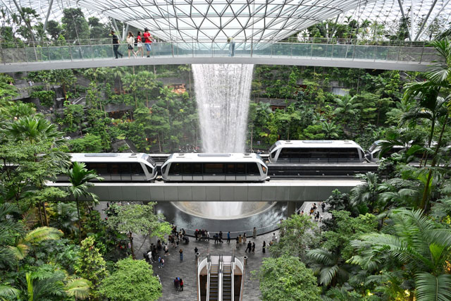 シンガポールのチャンギ空港内にある商業施設「ジュエル」を走るCrystal Mover=24年8月 PHOTO: Tadayuki YOSHIKAWA/Aviation Wire