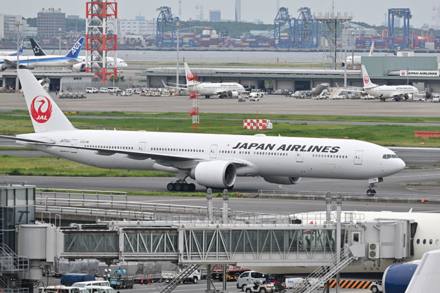 羽田空港の111番スポットへ向かうJAL 777-300ER初号機JA731J最終便上海発JL80便=25年5月27日 PHOTO: Tadayuki YOSHIKAWA/Aviation Wire