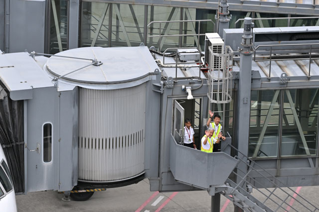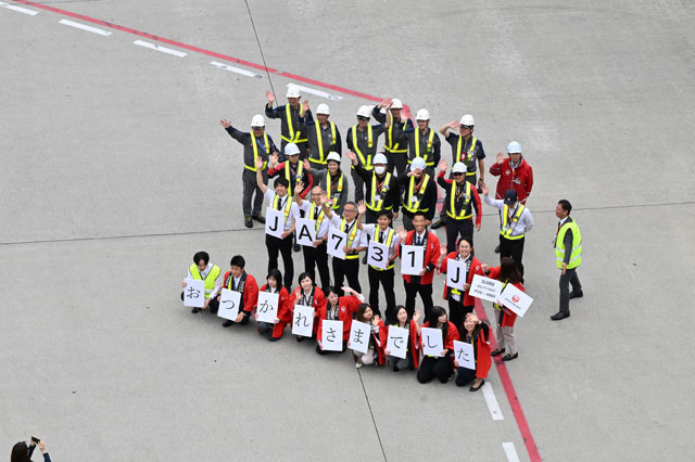 羽田空港へ到着したJAL 777-300ER初号機JA731J最終便上海発JL80便を出迎えたJAL社員=25年5月27日 PHOTO: Tadayuki YOSHIKAWA/Aviation Wire