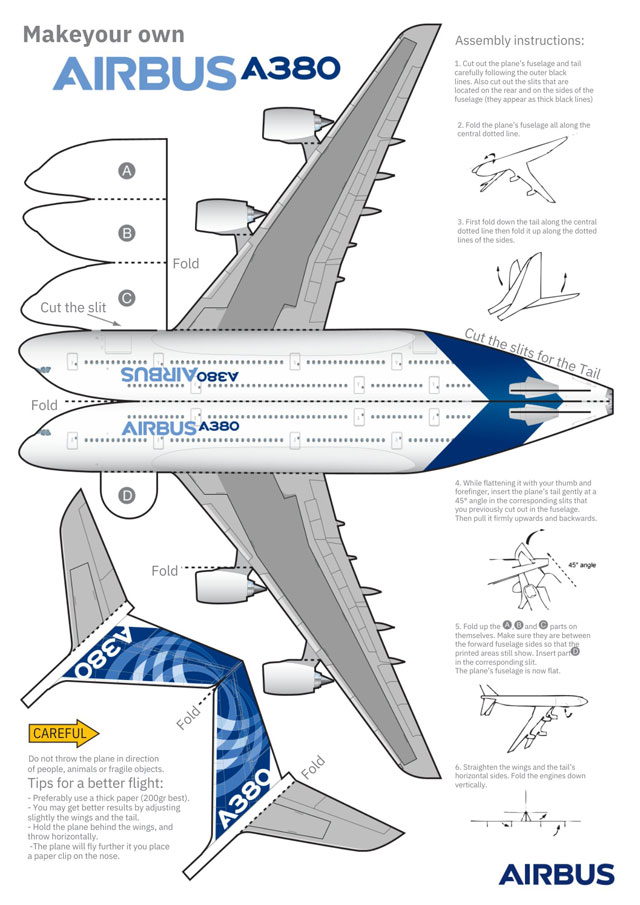 エアバスのA380紙飛行機データ(同社Xから)