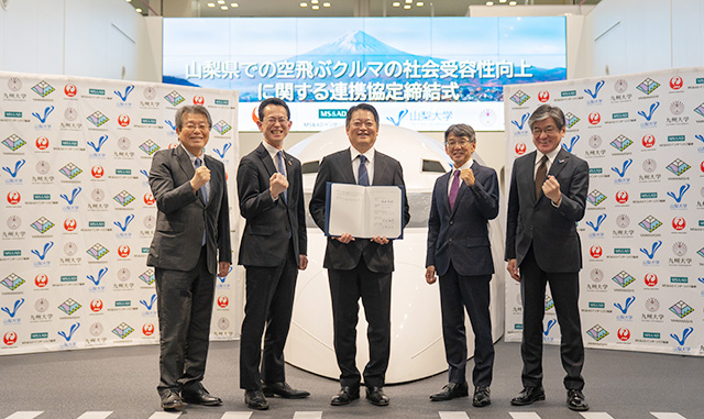 JAL・山梨県ら5者、地方での「空飛ぶクルマ」実装へ産官学連携 社会受容性の向上へ