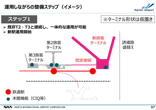 成田空港ワンターミナル化のステップ1で新駅供用開始(NAAの資料から)