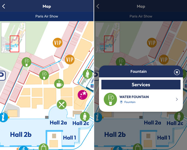 水飲み場を検索できるパリ航空ショーの公式アプリ
