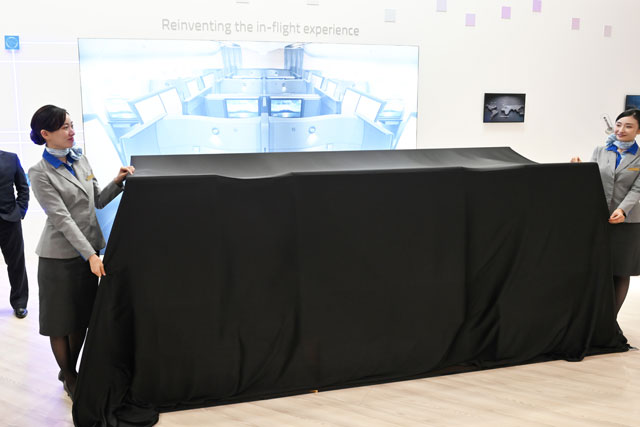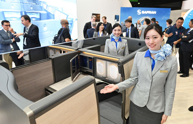 パリ航空ショーでANAの新個室ビジネスクラス「THE Room FX」をお披露目する客室乗務員=25年6月17日 PHOTO: Tadayuki YOSHIKAWA/Aviation Wire