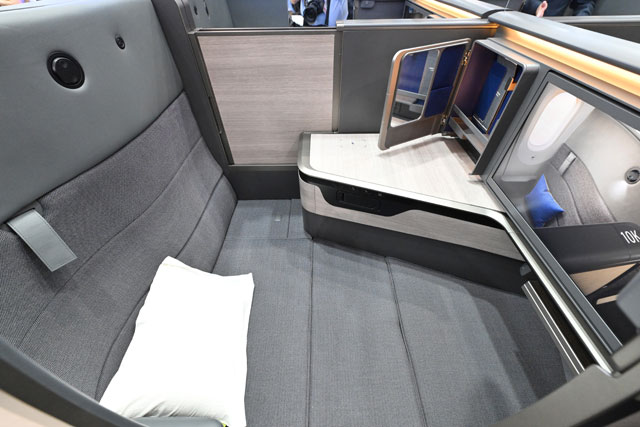 シート製造は仏サフラン・シートで、英国のデザイン会社アキュメン・デザイン・アソシエートがデザインを監修した。中型機787のビジネスクラスながら、大型機777-300ERと変わらない快適性を実現し、中型機の同クラスシートでは世界トップクラスの広さだという。
