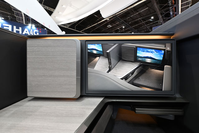 パリ航空ショーでお披露目されたANAの新個室ビジネスクラス「THE Room FX」の24インチモニター=25年6月17日 PHOTO: Tadayuki YOSHIKAWA/Aviation Wire