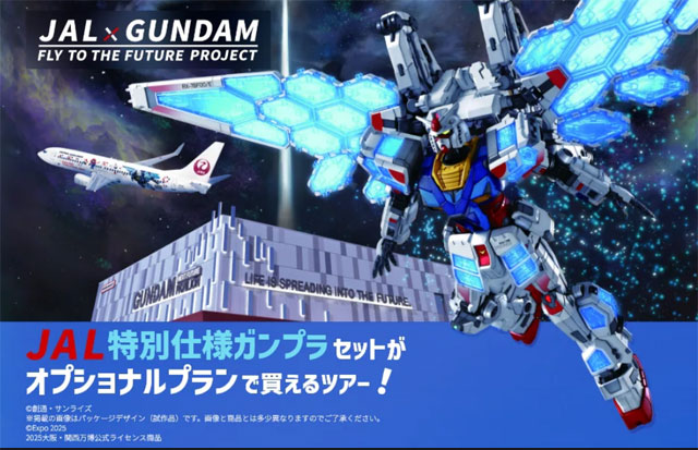 ジャルパックが扱う「JAL特別仕様ガンプラセットがオプショナルプランで買えるツアー」(JAL提供)