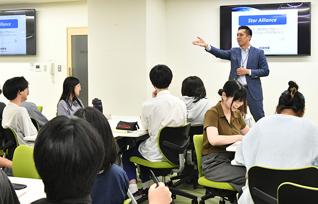 ワークショップのテーマは「20年後の観光業をデザインしよう」で、観光業が抱える現在と未来の課題について考え、解決策を話し合った。スタアラからはANAのほかシンガポール航空(SIA/SQ)、アシアナ航空(AAR/OZ)、タイ国際航空(THA/TG)、エバー航空(EVA/BR)、ルフトハンザ ドイツ航空(DLH/LH)を中核とするルフトハンザグループ、LOTポーランド航空(LOT/LO)、中国国際航空(エアチャイナ、CCA/CA)、ターキッシュエアラインズ(旧称トルコ航空、THY/TK)の計9社のスタッフ13人が参加。今年4月に入学した国際観光ビジネス科と国際ホテル&ブライダル科の新入生43人と意見を出し合った。