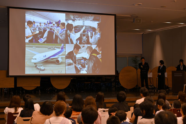 イベント後半には、大西さんとANAに同期入社した上原荘太郎機長と、JAXAで大西さんとともに働く関川知里フライトディレクタが登壇。上原さんは、パイロット訓練生時代に仲間から慕われ、フライトに関する疑問にも丁寧に答えてくれた思い出を振り返り、パイロットのやりがいや日々の仕事内容、チームワークの大切さを伝えた。