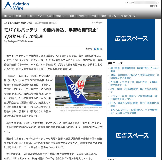 Aviation Wire有料版のイメージ
