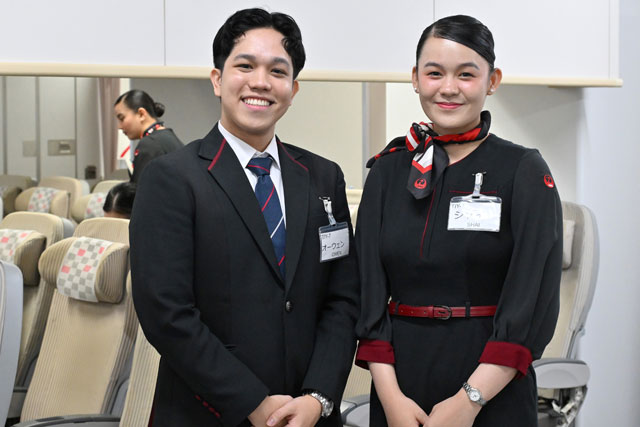 1期生のジャスさんは「日本に初めて滞在し、文化や規律に驚きと感動を覚えました」と話す。「訓練は大変ですが、仲間との絆が家族のようです。日本の温かさと歓迎を感じ、自分もそうなりたいと思いました」と述べ、「謙虚さと周囲を大切にする客室乗務員を目指します」と目標を語ってくれた。