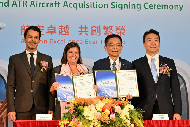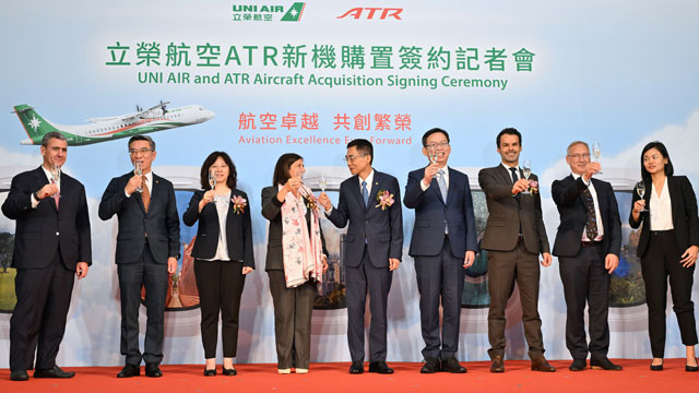 25日に台北市内で開かれた調印式には、ユニーの林志忠(リン・チーチョン)会長やATRのナタリー・タルノー・ロードCEO(最高経営責任者)らが出席。林会長は「台湾国内線で約60%の市場シェアがあり、ビジネスや観光の利用者に加え、離島に暮らす人々にとって、家族に会うためや医療を受けるための重要な交通手段だ。運航効率と市場競争力を高めるため、今回発注した新造機を導入する」と語った。