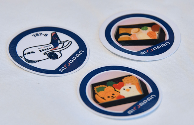 AirJapanが期間限定イベントのガチャ景品として提供するステッカー=25年7月25日 PHOTO: Yusuke KOHASE/Aviation Wire