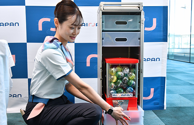 企画に携わったエアージャパンCAの乗附(のつけ)朋美さんは、「お客さまの機内での過ごし方が多種多様なため、多角化な視点で検討した。収納スペースの確保に苦労した」と振り返った。ガチャは訪日客に人気が高いことから「日本ならではのドキドキとワクワクを提供したい」と話した。乗附さんは、同日の成田発シンガポール行きNQ3便に乗務することから、取材対応後は足早に乗り込んだ。