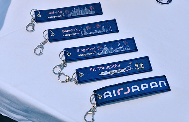 AirJapanが期間限定イベントのガチャ景品として提供するフライトタグ=25年7月25日 PHOTO: Yusuke KOHASE/Aviation Wire