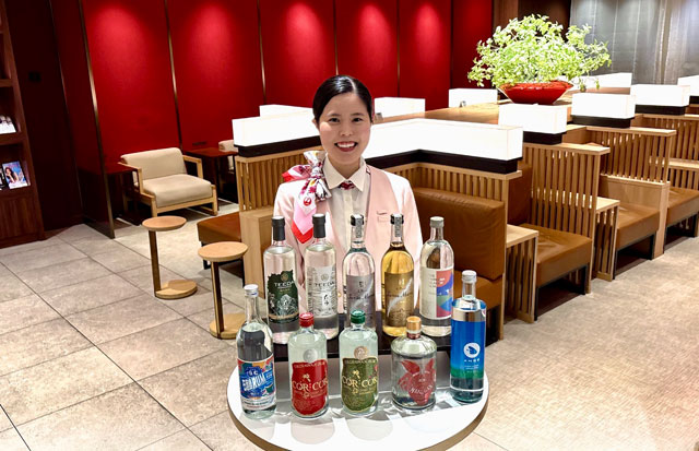 那覇空港のダイヤモンド・プレミアラウンジで沖縄県産ラム酒を提供するJAL(同社提供)