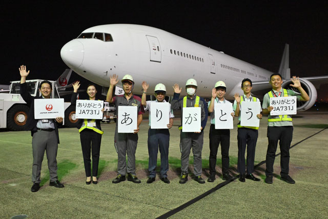 ・JAL 777-300ER、初退役前に社員が出迎え 機材繰りで20日が4号機ラスト(24年8月19日)