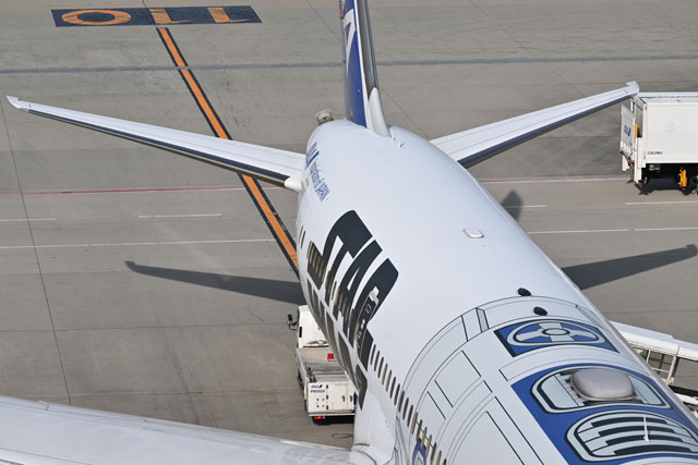 全日本空輸(ANA/NH)は8月7日、映画『スター・ウォーズ』の特別塗装機「ANA STAR WARS JETS」のうち、人気キャラクター「R2-D2」を描いた「R2-D2 ANA JET」(ボーイング787-9型機、登録記号JA873A、3クラス215席)の運航を終了した。最終便となったワシントンD.C.発NH101便が、羽田空港の第3ターミナル110番スポット(駐機場)へ午後3時32分に到着した。110番スポットは国際線初便のバンクーバー行きNH116便が出発時に使用したスポットで、2015年10月から約9年9カ月におよぶ運航を終えた。今後は機体の整備作業とともに通常塗装へ塗り替えられる。