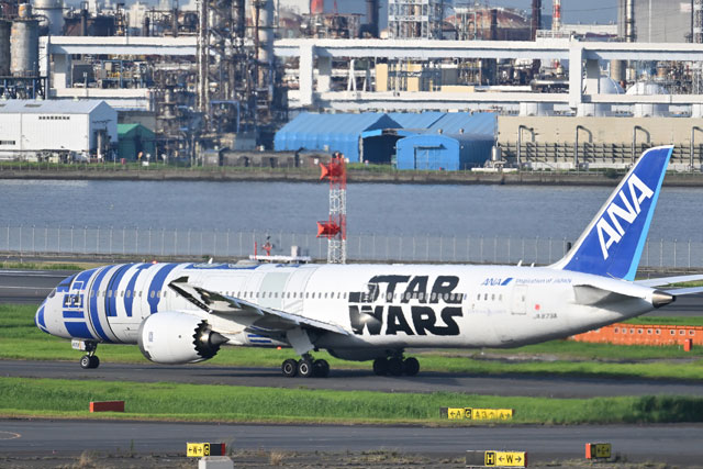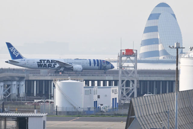 ・R2-D2描いた787、羽田に降り立つ 写真特集・ANAスター・ウォーズ塗装1号機(15年10月3日)
