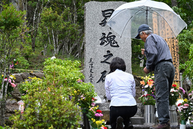 JAL鳥取社長、雨の御巣鷹山で献花 日航機事故40年
