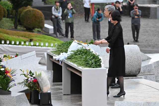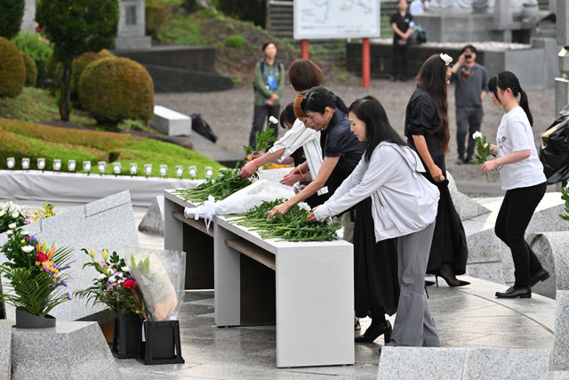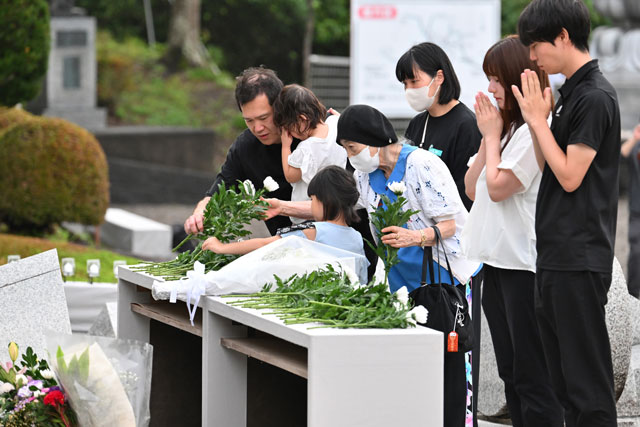 慰霊の園で献花する遺族=25年8月12日 PHOTO: Tadayuki YOSHIKAWA/Aviation Wire