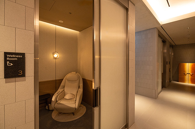 リニューアルする「マイラークラブ」と「プレステージ東ラウンジ(右エリア)」には、シャワー室のほか、個室にマッサージ機を設置する「ウェルネスエリア」、ワーキングスペースを用意する「テックエリア」、大型画面を備え会議にも対応する「ミーティングルーム」などを設ける。