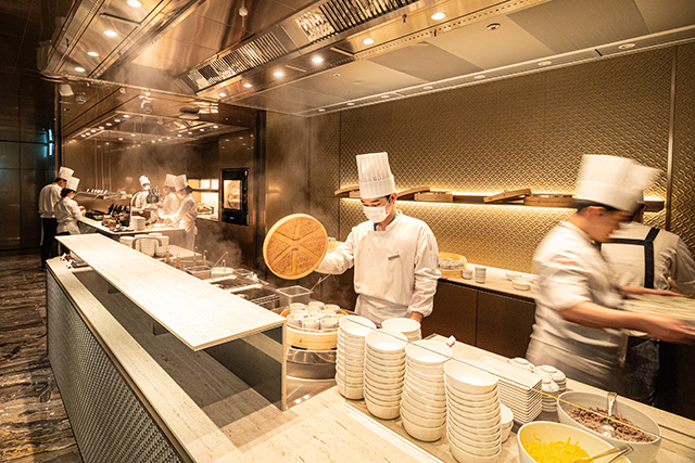大韓航空が刷新する「プレステージ東ラウンジ(右エリア)」のビュッフェ(同社提供)