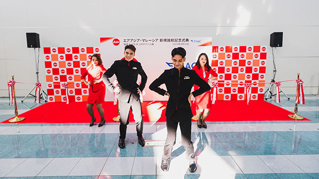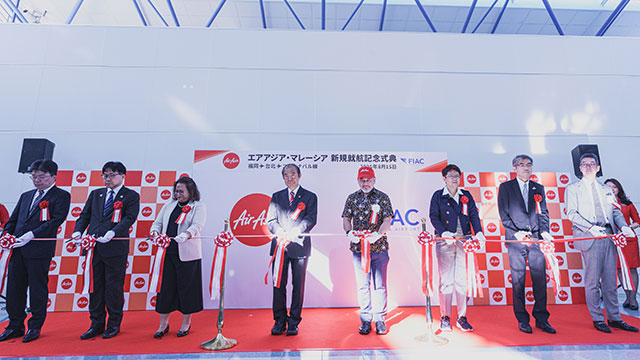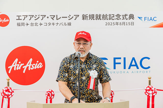 15日に福岡空港で開かれた記念式典には、エアアジア・マレーシアのダトー・キャプテン・ ファレ・マズプトラCEO(最高経営責任者)、福岡空港を運営する福岡国際空港会社(FIAC)の田川真司社長、台北駐福岡経済文化弁事処の陳銘俊総領事、マレーシア政府観光局日本局長らが出席した。