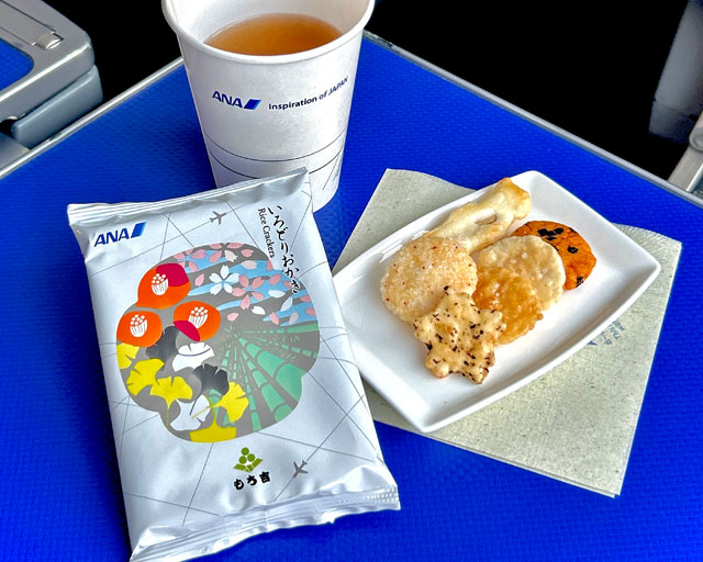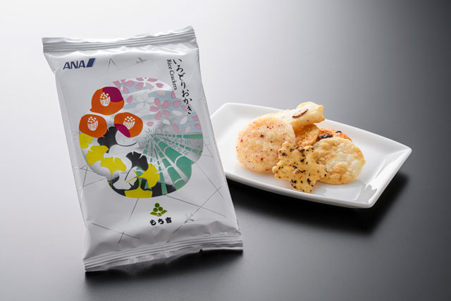 全日本空輸(ANA/NH)は8月28日、福岡県の米菓の老舗「もち吉」とコラボレーションしたおかき「いろどりおかき」を、9月1日から国内線プレミアムクラスと国際線ファーストクラス・ビジネスクラスで提供すると発表した。