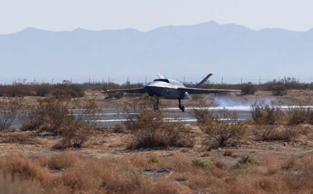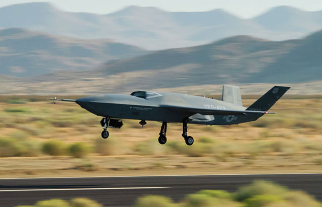 初飛行した米空軍のYFQ-42A (同軍提供)