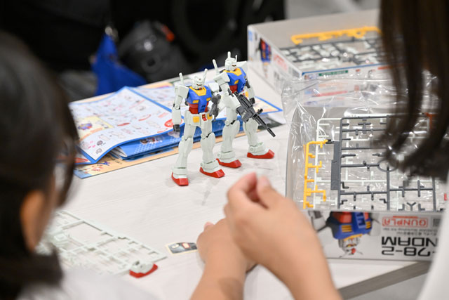 JALが伊丹空港で開いた「ガンプラ組み立て教室」で組立が進むガンプラ=25年8月30日 PHOTO: Tadayuki YOSHIKAWA/Aviation Wire