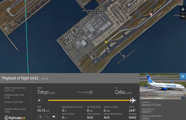 ユナイテッド航空の成田-セブ線は、2024年10月27日に就航。成田からの以遠権を活用した路線で、当該機は7月11日に就航した成田-高雄線の初便に投入された機体だった。