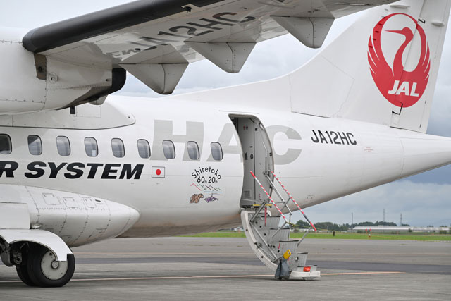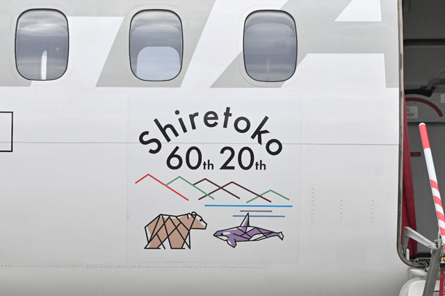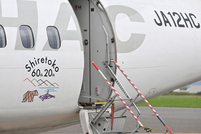 日本航空(JAL/JL、9201)グループで札幌の丘珠空港を拠点とする北海道エアシステム(HAC、NTH/JL)は9月18日、知床国立公園の国立公園指定60周年と世界自然遺産登録20周年を記念したロゴを機体に施したデカール機(ATR42-600型機、登録記号JA12HC)を就航させた。2026年3月ごろまで運航を予定している。