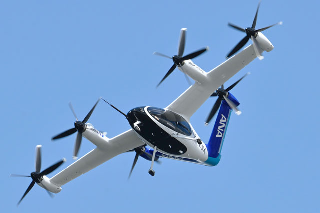 全日本空輸(ANA/NH)を傘下に持つANAホールディングス(ANAHD、9202)は9月30日、日本では「空飛ぶクルマ」と呼ばれるeVTOL(電動垂直離着陸機)のデモ飛行を、大阪・関西万博の会場で実施した。トヨタ自動車(7203)が出資する米Joby Aviation(ジョビー・アビエーション)が開発中のeVTOL「Joby S4」(登録記号N542JX)を使い、万博会場西側の上空を12分48秒飛行した。ANAHDでは、2027年度以降に「エアタクシー」として実用化を目指す。