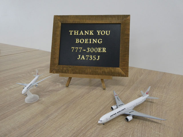 JA735J ファイナル見学ツアーの参加者を出迎えた社員制作プレート(同社提供)