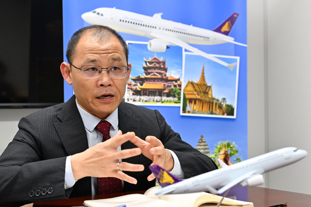 同社の東京支店長に今年就任したケビン・リー氏(50)は、中国国際航空(エアチャイナ、CCA/CA)グループの深セン航空(CSZ/ZH)の大阪支店総経理などを歴任。リー支社長によると、エア・カンボジアは、IATA(国際航空運送協会)が策定した国際的な航空安全監査プログラム「IOSA(IATA Operational Safety Audit:国際運航安全監査)」の取得や、日本語を話せる客室乗務員の採用などを進めてきたという。