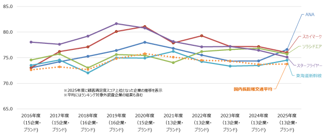 JCSI調査国内長距離交通部門のランキング推移(JCSIの資料から)