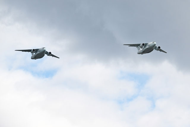 入間航空祭で展示飛行する2機のC-2=25年11月3日 PHOTO: Tadayuki YOSHIKAWA/Aviation Wire