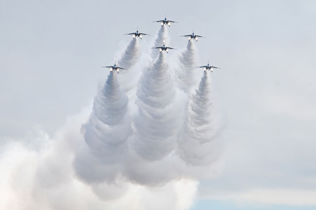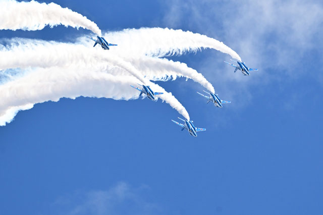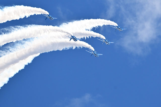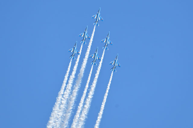 (1)ブルーインパルス、秋晴れにハートやダイヤモンド描く