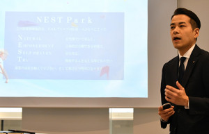 リニューアルした教育施設「NEST Park」は物理的な壁を極力廃し、仕切りのないエリアを採用。ほかの人が訓練している様子を目にすることで、さらなる成長を促す。これまでの教育は大学の講義のように全員が同じ方向を向いていたため、ほかの受講者の顔色見えない問題点があったが、リニューアル後は車座で対話できる仕組みに変更。双方向性を重視した「アクティブラーニング」で、講師や受講者同士のやりとりを通じ理解を深めてもらう。