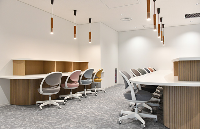 受講者は国内外から参加する場合も多いことから、待ち合わせや予習・復習に活用できる「ラウンジ」も備える。このほか、教育を担当する講師の控え室も設ける。
