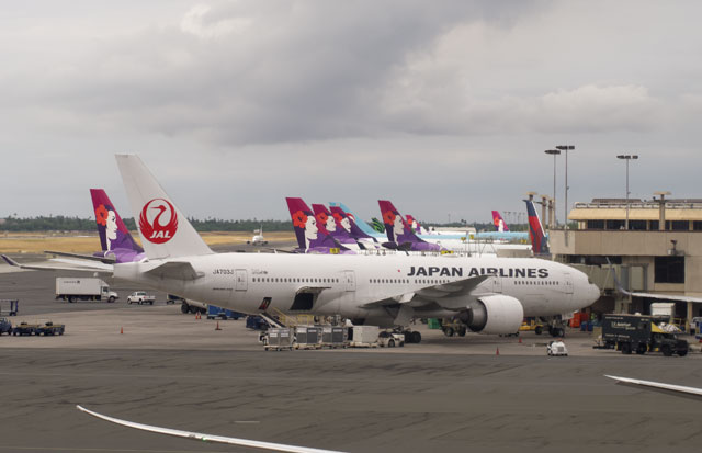 年末年始を中心に成田-ホノルル線を増便するJAL(手前)=PHOTO: Tadayuki YOSHIKAWA/Aviation Wire