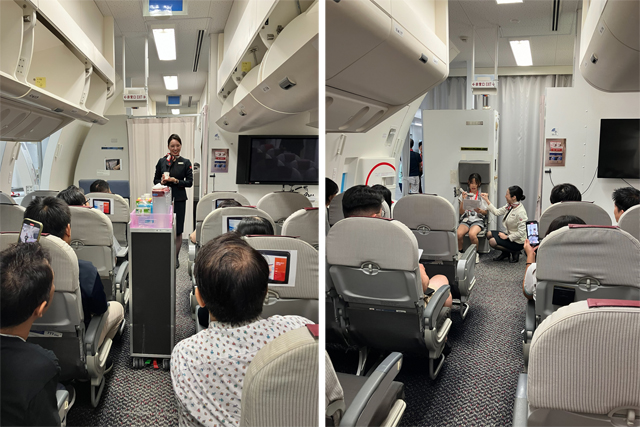 JAL客室乗務員体験と国際線ビジネスクラス機内食ランチ(はとバス)