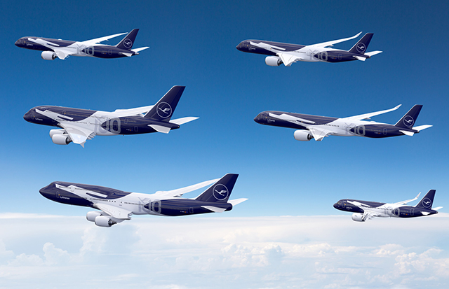 100周年記念塗装を施すルフトハンザの6機種(同社提供)
