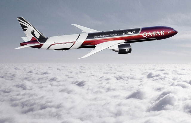 カタール航空(QTR/QR)は、F1(フォーミュラ1)の特別塗装を施したボーイング777-300ER型機(登録記号A7-BEG)を、現地時間12月4日のドーハ-成田線へ投入する。成田行きQR806便は4日午後5時55分着、ドーハ行きQR807便は午後9時55分発を予定している。