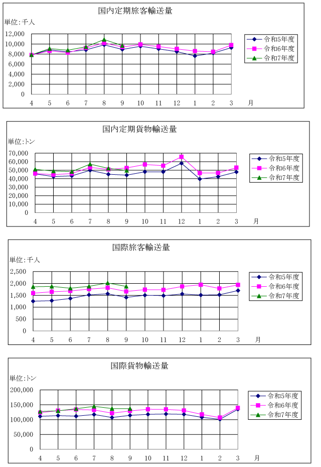 23-25年度の輸送量の変化(航空輸送統計速報25年9月分から)