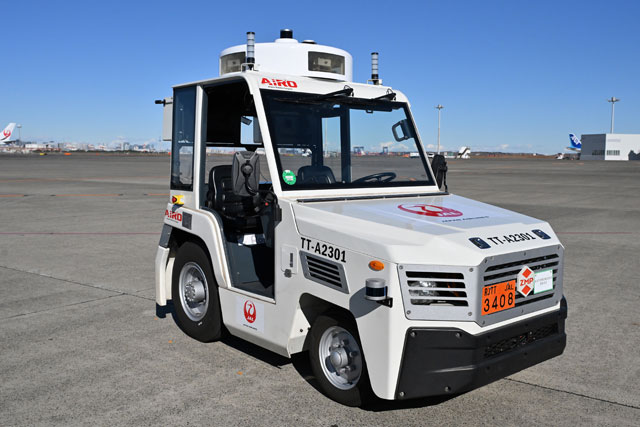 羽田空港で自動運転レベル4を実用化したJALの電動トーイングトラクター=25年12月15日 PHOTO: Tadayuki YOSHIKAWA/Aviation Wire